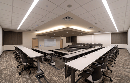 But let's not forget the staff, says Dr. Steve Hotchkiss: "Your staff is your golden goose." This 50-seat training room fixes a "pitfall" Dr. Hotchkiss saw in the last decade: "We had so much trouble finding a place to train where we wouldn't be interrupted."