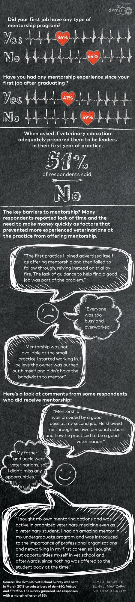 The 2016 Deloitte Millennial Survey shows just how vital mentoring is to your new workforce. According to their research, 66 percent of millennials expect to leave their jobs by 2020. The study also indicates it's a lack of mentorship pushing some millennials to move on, with 63 percent reporting their leadership skills are not being fully developed. The 2018 dvm360 Vet School Survey examined veterinarians' opinions about how prepared they were for their first year of practice. Here's a look at how mentorship shakes out in the veterinary profession.